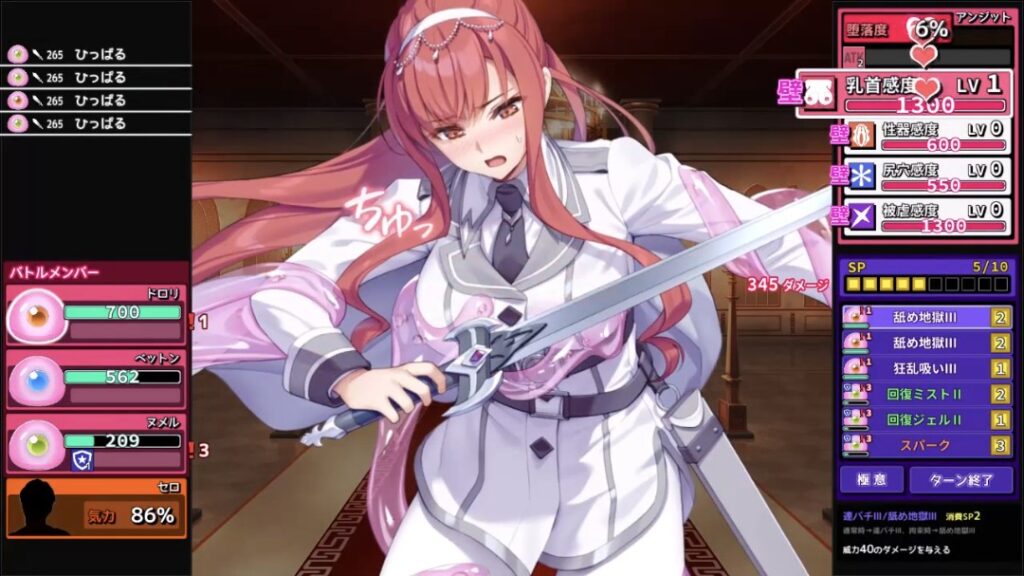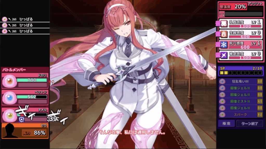 一定ダメージを与えると、スライムによる拘束が始まり、攻撃はセクハラみたいなエロ攻撃に変化しひたすら屈服させるだけww