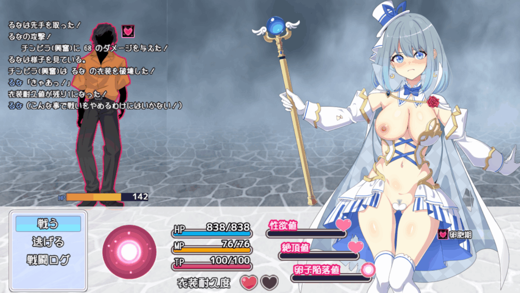 敵の攻撃を回避できなかった場合、服が破けてしまう(もう一段階ある)